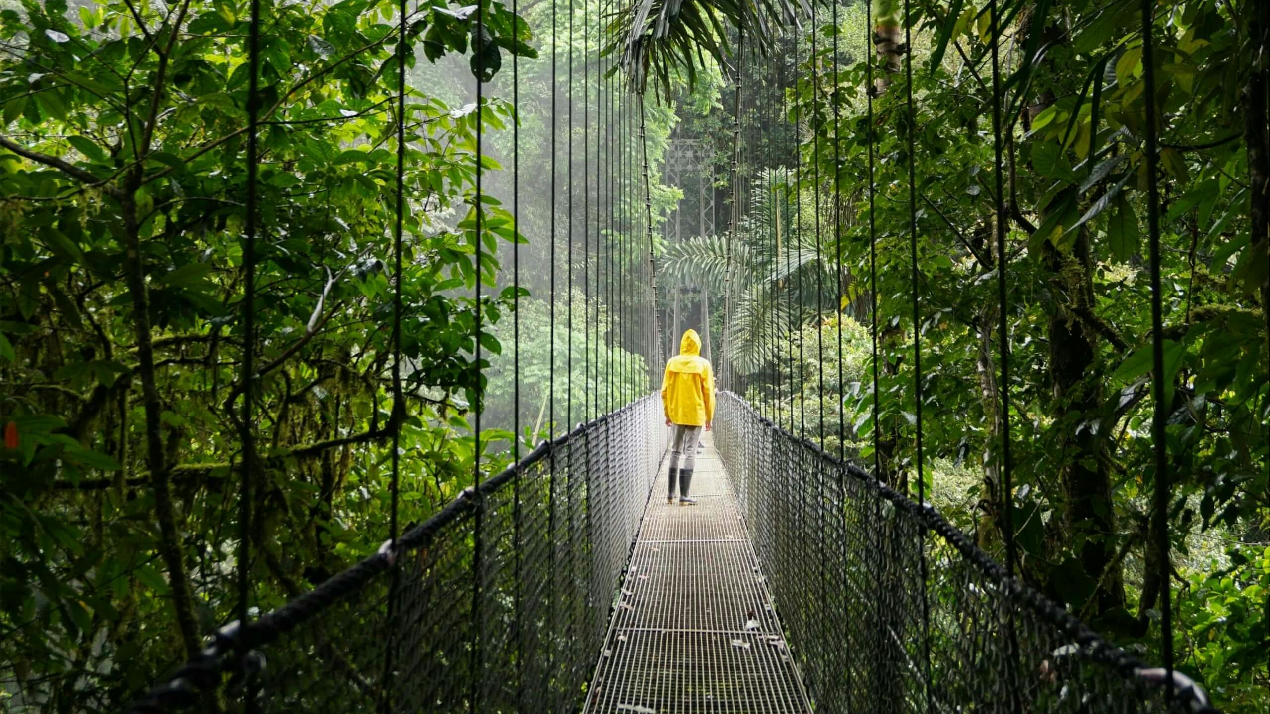 Monteverde is een paradijs van rust en natuur. De natuur is de baas en natuurbescherming is hier zo ongeveer uitgevonden. Je hebt er talloze excursiemogelijkheden. Van in een harnas, hangend aan een kabel, springend als Tarzan van platform naar platform hoog in de bomentoppen tot serene wandelingen over hangbruggen kris kras door het nevelwoud. Of ontdek de talloze vogels en kikkers van gifgroen tot rood met een zwarte broek aan.
